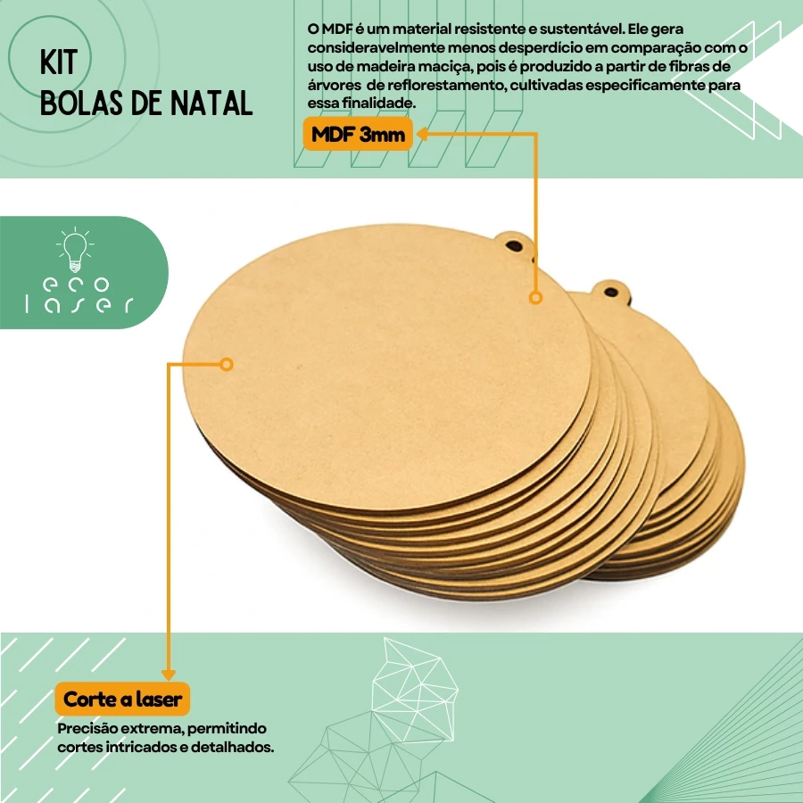Decore sua árvore de Natal com criatividade e estilo com o Kit Bolas de Natal em MDF cru. Perfeito para personalização, esse kit é ideal para quem deseja criar enfeites únicos, seja pintando, desenhando, colando glitter ou apliques.