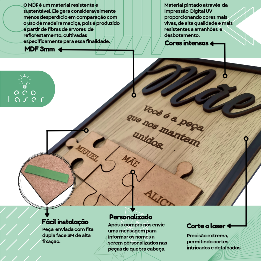 Após efetuar a compra entre em contato com a nossa equipe para informar os nomes a serem personalizados nas peças do quebra-cabeça.
